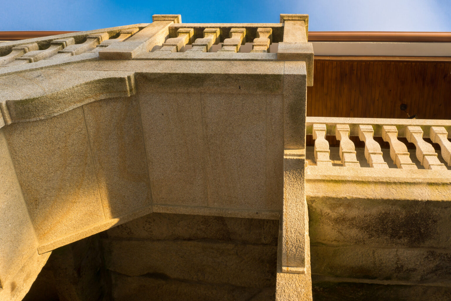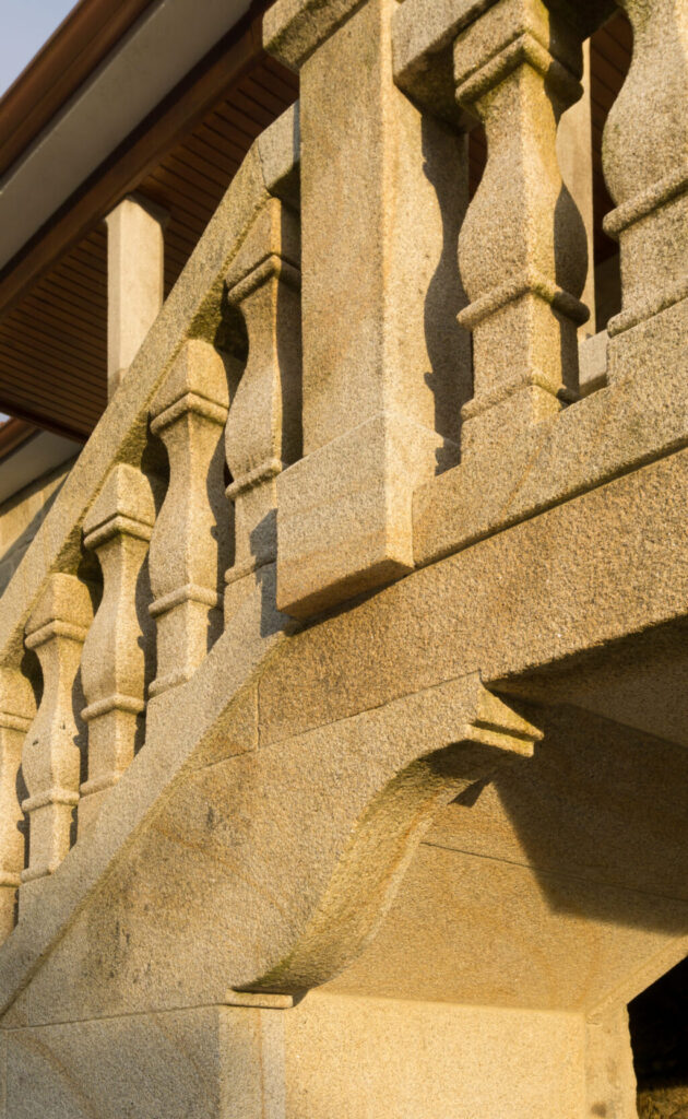 A pesar de tener claro que “la piedra del país”, como se llama en Galicia a la piedra típica de sus canteras, iba a ser el material de reconstrucción de la nueva escalera, era necesario definir el diseño de todos los elementos constructivos. Para ello, ha sido imprescindible hacer un estudio de la construcción de las casas de aquella época llegando a la conclusión de que la balaustrada y las ménsulas simularían a las de las casonas y pazos de la misma zona pertenecientes a la época.